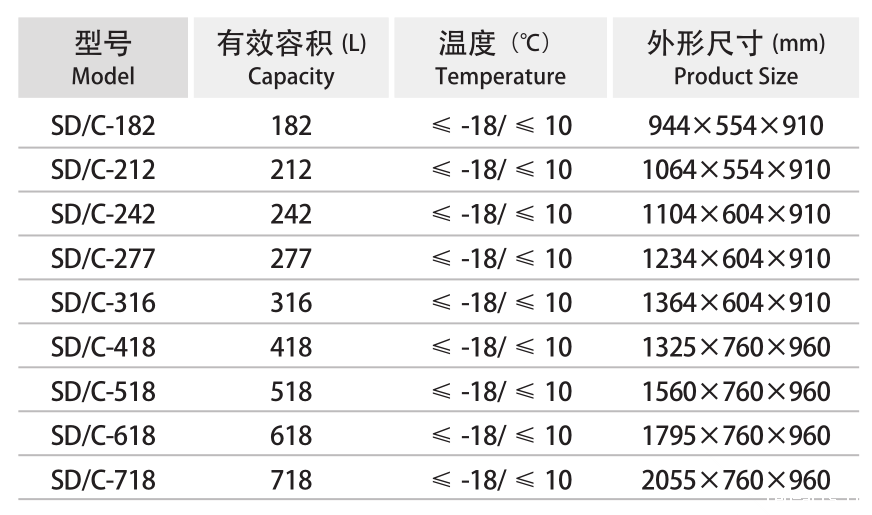 卧式单温冷冻冷藏可转换系列